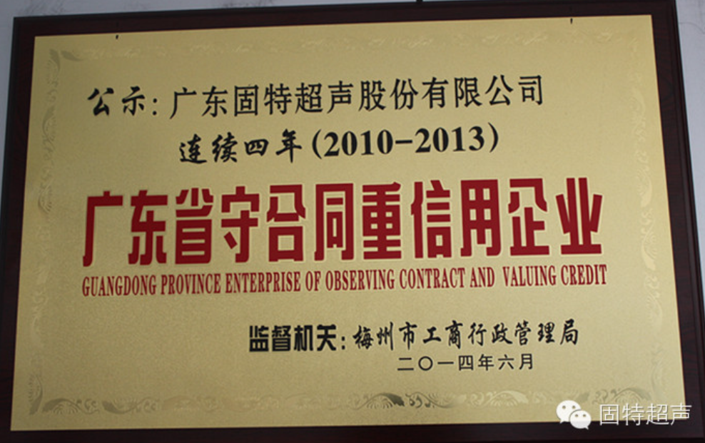 自成立伊始,固特超聲即榮列“廣東省守合同重信用企業(yè)”榜中,迄今已連續(xù)四年,這是管理機(jī)關(guān)對(duì)固特超聲合同管理水平、合同履約能力及社會(huì)信譽(yù)的高度評(píng)價(jià),更是社會(huì)各界對(duì)固特超聲成立以來(lái)在超聲行業(yè)誠(chéng)信經(jīng)營(yíng)的充分認(rèn)可。今后,固特超聲將繼續(xù)秉持“誠(chéng)信經(jīng)營(yíng)”原則,依靠強(qiáng)大的品牌實(shí)力、良好的企業(yè)信譽(yù)度和更優(yōu)質(zhì)完善的服務(wù),滿足廣大客戶的需求,促進(jìn)超聲清洗行業(yè)和諧、健康、持續(xù)地發(fā)展。