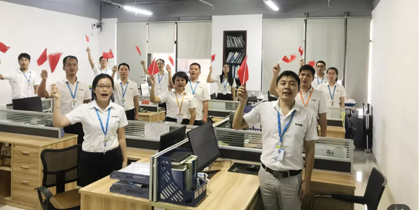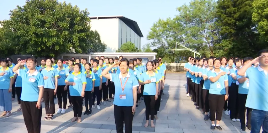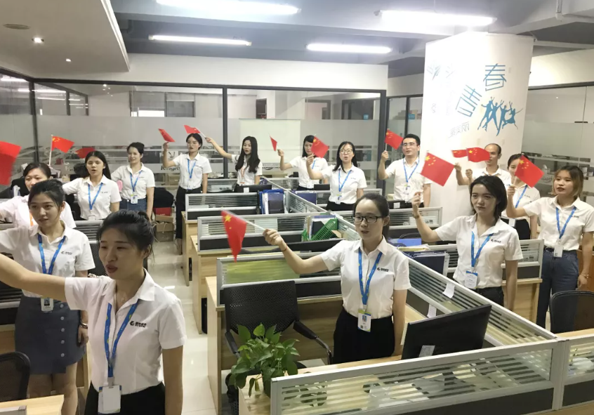 升國旗、唱國歌。全體員工仰望著冉冉升起的五星紅旗,齊聲高唱《義勇軍進(jìn)行曲》,國旗升起、國歌唱響,每一位員工的愛國熱情瞬間燃爆!