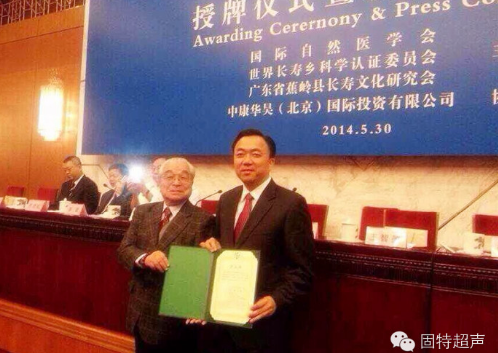 2014年5月30號(hào),世界長(zhǎng)壽之鄉(xiāng)――中國(guó)·蕉嶺授牌儀式暨新聞發(fā)布會(huì)在人民大會(huì)堂隆重舉行,這是蕉嶺人民的一件大喜事,也是全中國(guó)人民的一件盛事。在此,廣東固特超聲股份有限公司做為長(zhǎng)壽之鄉(xiāng)的明星企業(yè),向蕉嶺的父老鄉(xiāng)親們表示祝賀。