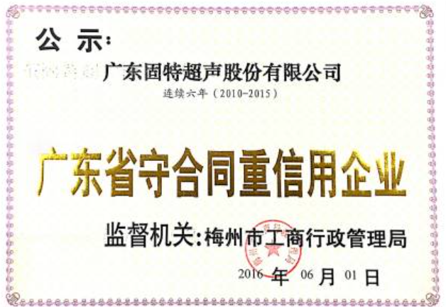 是廣東省工商管理局和業(yè)界對(duì)固特超聲誠(chéng)信經(jīng)營(yíng)的充分肯定