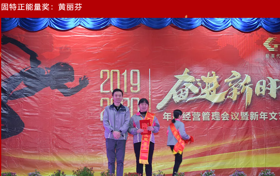 為了鼓勵(lì)先進(jìn)、弘揚(yáng)典型、樹(shù)立榜樣,進(jìn)一步激發(fā)廣大員工的積極性和創(chuàng)造性,公司于1月17日10點(diǎn)20在集團(tuán)總部文體中心隆重召開(kāi)年度先進(jìn)表彰大會(huì)。對(duì)榮獲2019年度的先進(jìn)團(tuán)隊(duì)及個(gè)人予以表彰。來(lái)自固特集團(tuán)各公司的員工們參加了本次盛典,共同見(jiàn)證了2019年度優(yōu)秀團(tuán)隊(duì)及先進(jìn)個(gè)人的榮譽(yù)時(shí)刻。